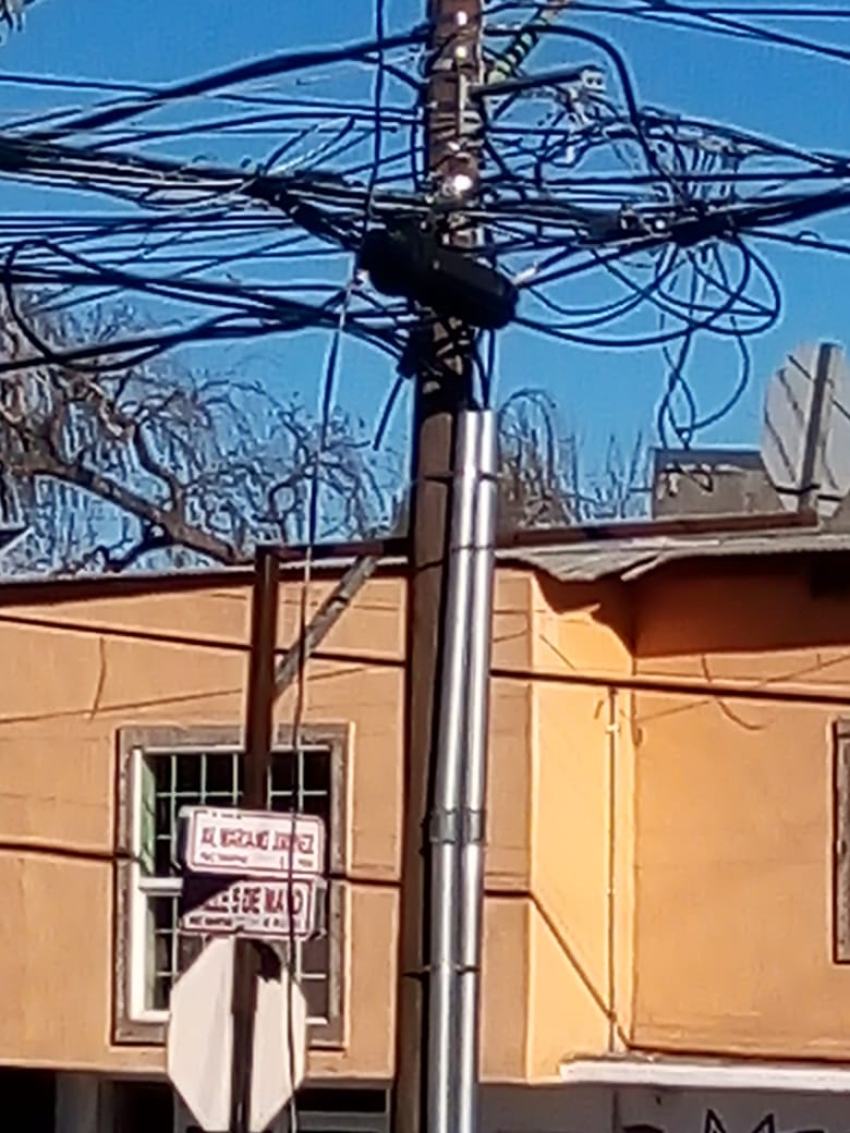 Cuauhtémoc.- De nueva cuanta vehículos pesados como tráileres derrumbaron los cables de teléfonos, de televisión, así como cables de electricidad que se localizaron con corriente viva en el centro de la calle Mariano Jiménez y 5 de Mayo.
