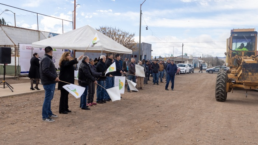 Cd. Cuauhtémoc, Chih.- El presidente municipal Beto Pérez y el director regional del Gobierno de México, Óscar Leos, encabezaron el arranque de dos obras de pavimentación con recurso Repuve, por un total de $3,527,746.76, que se realizarán a través de la Dirección de Obras Públicas del Municipio.