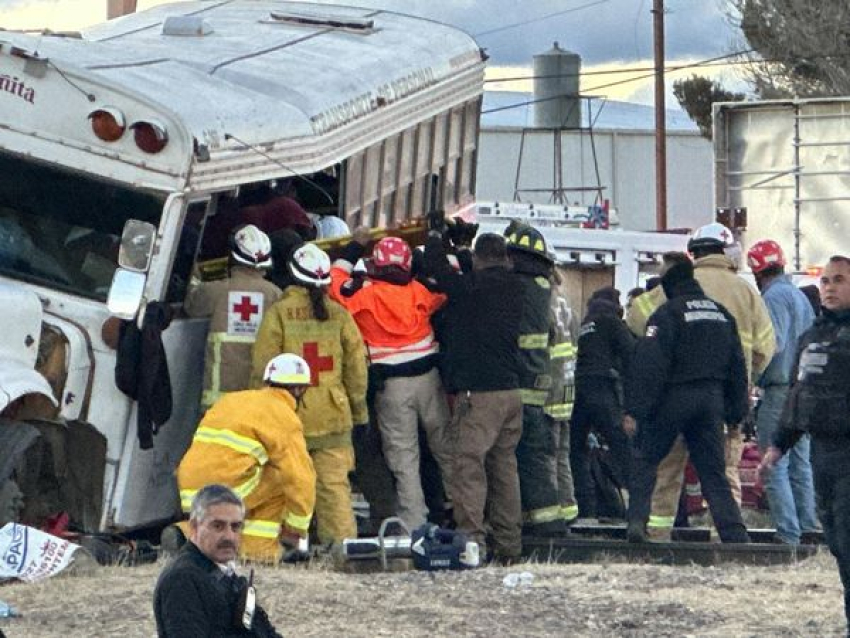 Cuauhtémoc.- Un impresionante accidente se registró la tarde de este miércoles en la avenida mangos y ferrocarril, cuando un camión de trabajadores de la compañía “La Norteñita” transportaba a trabajadores a sus domicilios cuando se atravesó en la vía del ferrocarril causando el trágico accidente.