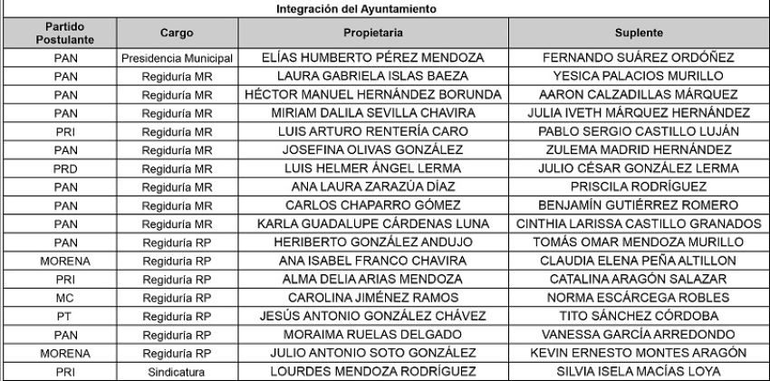 La integración del Ayuntamiento se lleva a cabo conforme a la voluntad expresada por la ciudadanía en las urnas, cumpliendo con los criterios de paridad de género y de acciones afirmativas.