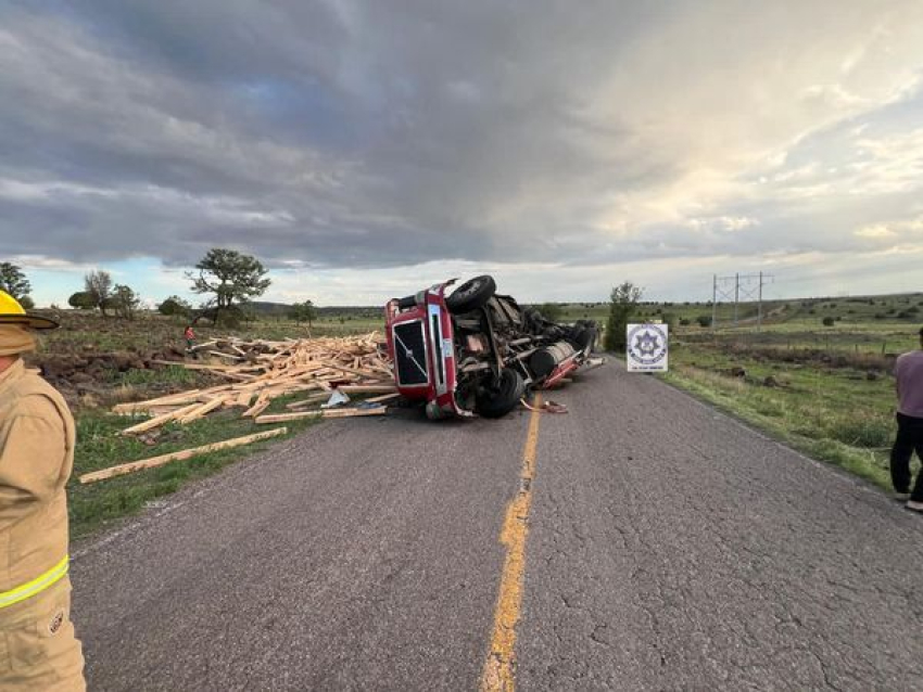 Cuauhtémoc.- Un tracto camión quinta rueda, de la marca Volvo, color rojo, modelo 2010, con placas nacionales, el cual era conducido por un joven de 19 años, volcó en la carretera Rubio-La Quemada después de perder el control, informo la policía seccional de Álvaro Obregón.