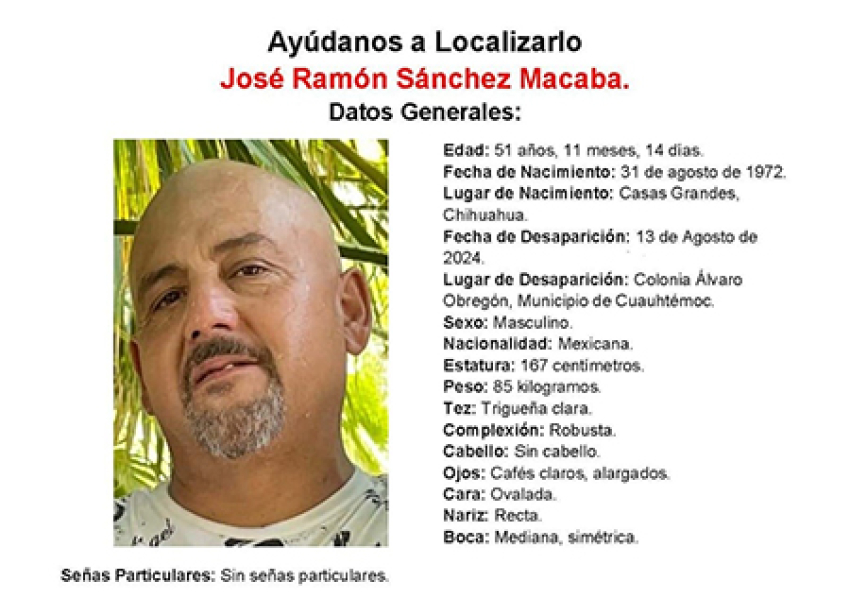 Fue descrito como de complexión robusta, tez morena, de 1.75 metros de estatura, aproximadamente, calvo, con barba de candado, el cual se hallaba cubierto del rostro y manos con cinta canela.