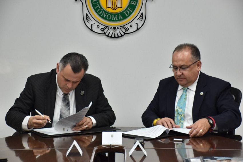 El Rector de la Universidad, Maestro Luis Alfonso Rivera Campos, firmó un convenio de colaboración con su homónimo de la Universidad de Baja California, Luis Enrique Palafox Maestre para enriquecer y enaltecer la investigación en la producción de vino en la región.