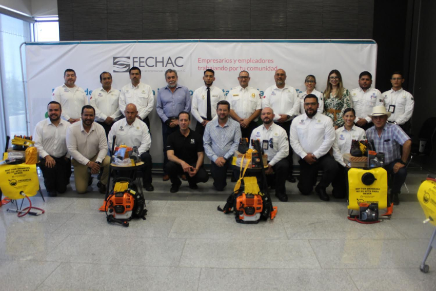 La donación fue realizada por la Fundación del Empresariado Chihuahuense (FECHAC), cuya directiva, encabezada por Luis Alberto Barrio, señaló que está específicamente destinado para el combate de incendios forestales.