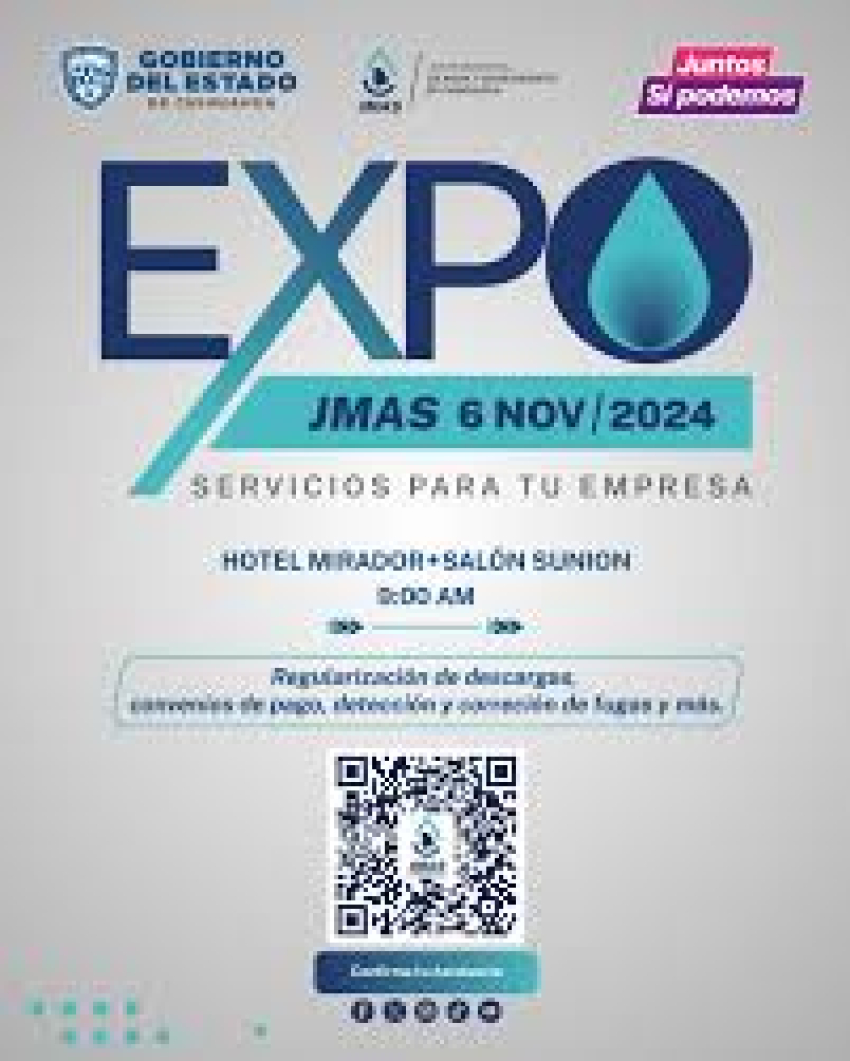Chihuahua.- Con el fin de ofrecer información y asesorías para el beneficio de empresas locales, la Junta Municipal de Agua y Saneamiento (JMAS) de Chihuahua llevará a cabo este próximo miércoles 6 de noviembre la Expo JMAS 2024 “Servicios para tu Empresa”.