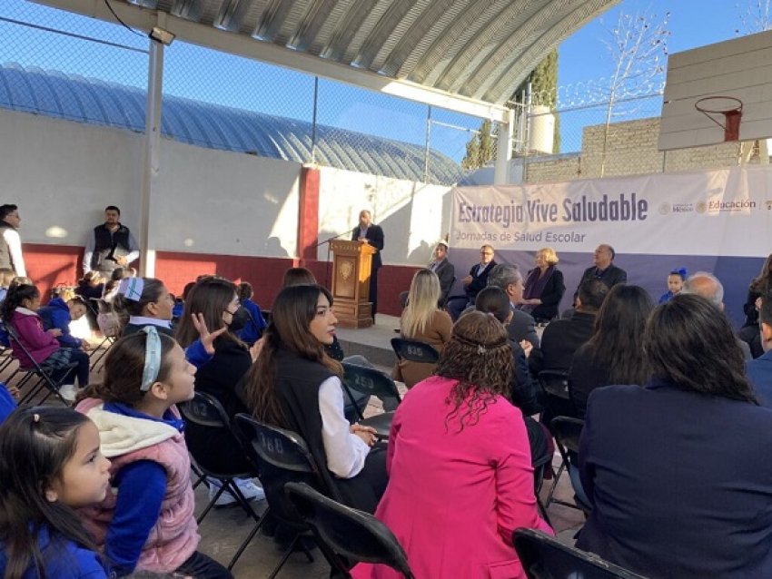Chihuahua.- Esta mañana la presidenta del DIF Estatal María Eufemia Galván Antillón dio arranque a la Estrategia Nacional de Vida Saludable en la escuela primaria estatal Abraham González localizada en la colonia Obrera en la capital.