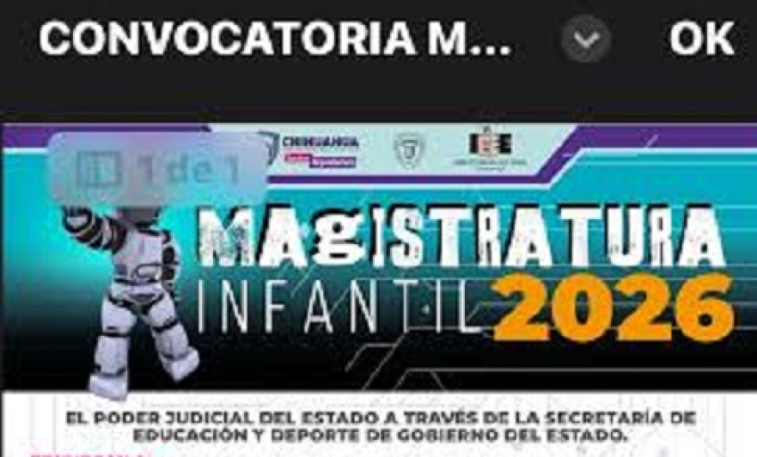 Chihuahua.- El Poder Judicial del Estado de Chihuahua, en colaboración con el Instituto Estatal Electoral, anuncia el inicio de la convocatoria para participar en el concurso Magistratura Infantil 2026, dirigido a niñas y niños que cursan sexto grado de primaria en escuelas públicas y privadas del municipio de Chihuahua.
