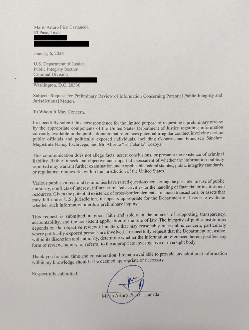 Pico Castañeda precisó que, en su calidad de asesor en materia de seguridad del estado de Texas, mantiene una comunicación institucional constante con autoridades estadounidenses, lo que —aseguró— ha permitido que este tipo de planteamientos sean recibidos con seriedad, apertura y sentido de responsabilidad dentro de los canales correspondientes.